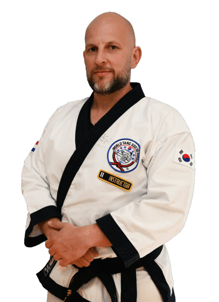 “Ik beoefen Tang Soo Do sinds 1999 en ben naast instructeur ook bestuurslid. Mijn favoriete onderdelen zijn schoptechnieken, Hyungs en wapens. Het proces om te verbeteren als mens is individueel en kan in een groep worden bereik met inzet en openheid.”